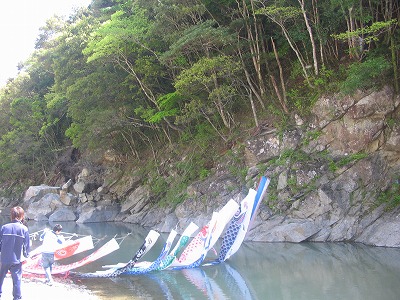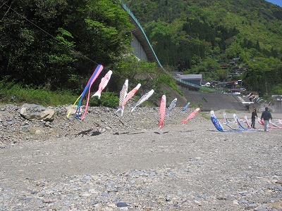 今日もワイヤー張りを担当してくれる青年の山師さんは対岸と、コッチとを行ったり来たり。山師がいないと、鯉のぼりが揚げられませんね!手に職を持っている事って素晴らしいことです☆