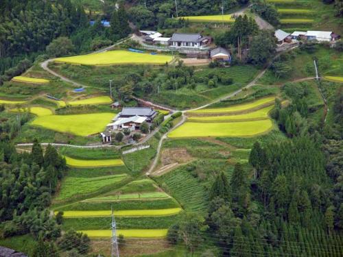 明日からみんな稲刈りに入る、ちょうど今日が黄金色の棚田を撮るには絶好の機会です。